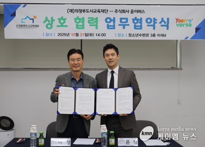 (케이엠뉴스) (재)의정부도시교육재단은 지난 10월 21일 ㈜윤이버스와 ‘AI 기반 영어학습 협력 기반 구축을 위한 업무협약’을 체결했다.