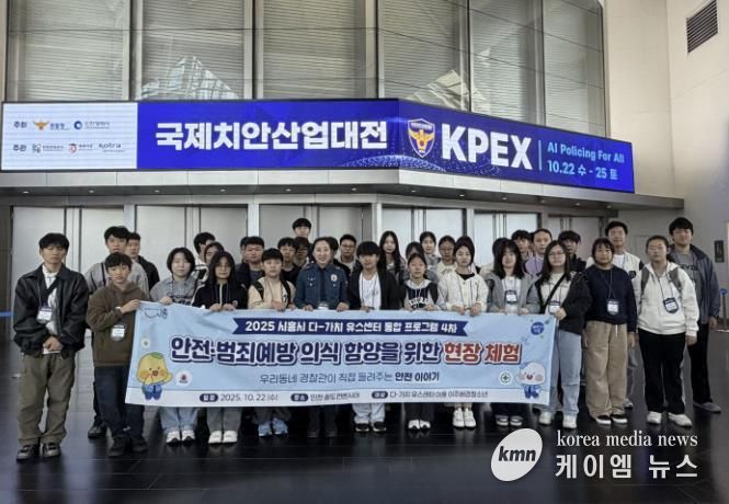 (케이엠뉴스) 시흥시는 지난 10월 22일, 다-가치유스센터 ‘국제청소년학습교실’ 이용 청소년 38명을 대상으로 인천 송도컨벤시아에서 열린 ‘제7회 2025 국제치안산업대전(KPEX)’을 견학하는 4차 통합 프로그램을 운영했다.