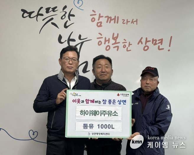 (케이엠뉴스) 가평군 상면에 소재한 하이웨이주유소는 최근 상면 행정복지센터를 방문해 등유 1,000리터(L)를 기탁했다.