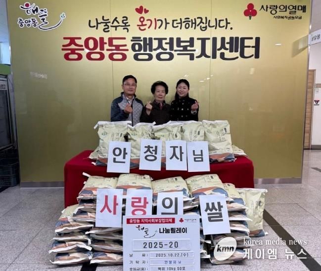 백경희 중앙동장은 “안청자 님의 따뜻한 온정이 우리 동의 복지공동체를 더욱 단단하게 만들어 주고 있다”며 “소중한 나눔을 실천해 주신 데 깊은 감사를 드리며, 전달된 백미는 도움이 필요한 이웃들에게 잘 전달하겠다”고 말했다.