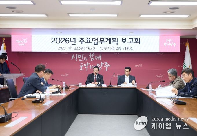 (케이엠뉴스) 양주시가 지난 13일과 14일, 22일 3일간 시청 2층 상황실에서 강수현 시장 주재로 ‘2026년 주요업무계획 보고회’를 개최했다.