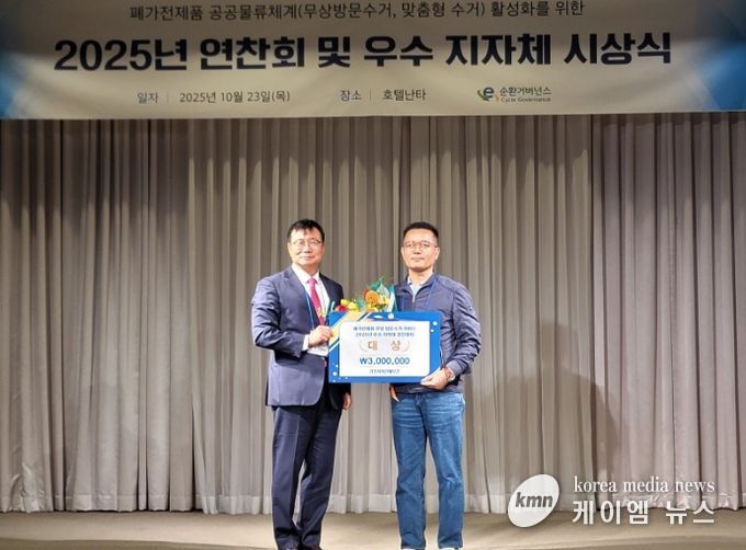 시는 23일 오후 제주 호텔난타에서 열린 ‘2025년 폐가전 무상 방문수거 우수지자체 경진대회’에서 기초지자체 부문 대상(기후에너지환경부 장관상)을 수상했다. 지난해 이어 2회 연속 대상 수상으로, 모든 부문을 통틀어 대상을 2회 수상한 지자체는 광명시가 최초다.