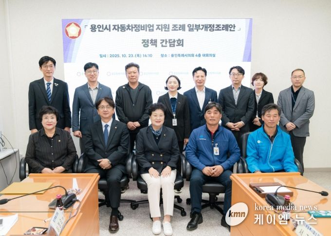 (케이엠뉴스) 용인특례시의회 남홍숙 의원(중앙동·이동읍·남사읍/더불어민주당)은 23일 의회 대회의실에서 ‘용인시 자동차정비업 지원 조례’ 개정을 위한 정책간담회를 개최했다.