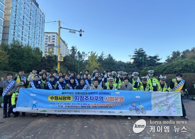 (케이엠뉴스) 수원특례시는 27일 수원시청역 일원에서 ‘공유자전거·킥보드(PM) 지정주차구역 시범운영 홍보 캠페인’을 펼쳤다.