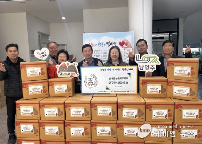 (케이엠뉴스) 남양주시는 28일 별내면 농촌지도자회가 직접 재배·수확한 고구마 150박스(6kg 단위)를 별내면에 기탁했다고 밝혔다.