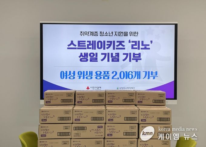 (케이엠뉴스) 남양주시는 아이돌 스트레이키즈의 팬이 멤버 ‘리노’의 생일(10월 25일)을 기념해 여성용품 2,016개를 남양주시복지재단(대표이사 원병일)에 기부했다고 28일 밝혔다.