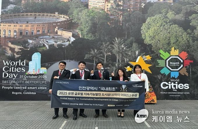 (케이엠뉴스) 인천광역시는 지난 10월 31일(현지시간) 콜롬비아 보고타에서 개최된 ‘2025 세계 도시의 날 기념식*((World Cities Day)’에서 ‘2025 유엔(UN) 글로벌 지속가능발전 도시상(Shanghai Award)*’을 수상하며 전 세계 ‘지속가능 도시모델’로 선정됐다고 밝혔다.