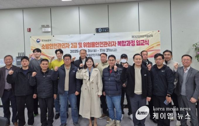 (케이엠뉴스) 국가보훈부 인천보훈지청 제대군인지원센터는 11월 3일 중·장기복무 제대(예정)군인을 대상으로 2025년 전문위탁교육'소방안전관리자 2급 및 위험물안전관리자 복합 취득과정'개강식을 가졌다.