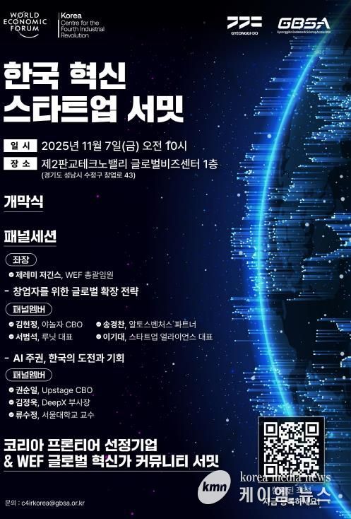 경기도는 오는 7일 세계경제포럼과 공동으로 ‘한국 혁신 스타트업 서밋(Korea Innovators Community Summit)’을 개최한다고 4일 밝혔다. 제2판교테크노밸리 글로벌비즈센터에서 열리는 이번 행사는 세계경제포럼과 경기도가 공동으로 선정한 한국 대표 혁신 스타트업들이 한자리에 모이는 최초의 공식 행사다. 세계경제포럼 혁신가 커뮤니티에 소속된 한국 기업과 함께 국내 유니콘 기업들이 참여한다.