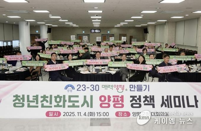 (케이엠뉴스) 양평군은 지난 4일 오후 3시 양평군청 대회의실에서 ‘청년친화도시 조성을 위한 미래 방향성과 차별화 전략’을 주제로 ‘23-30 매력 양평 만들기’ 정책세미나를 개최했다. 이번 세미나는 청년이 머물고 싶은 도시, 청년이 주도적으로 참여할 수 있는 ‘매력양평’ 구현을 위한 실질적인 정책 방향을 논의하고자 마련됐다.