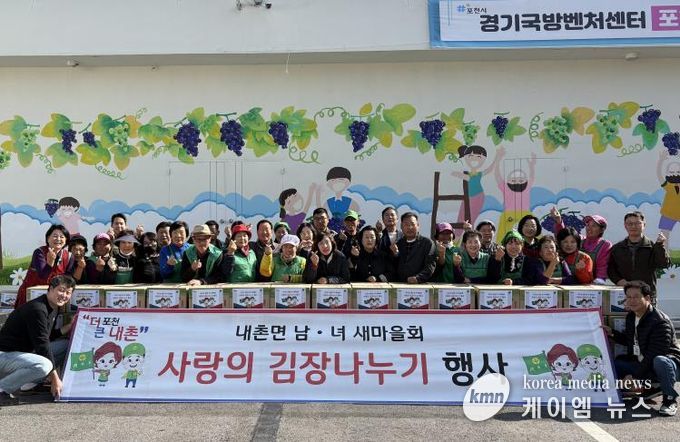 (케이엠뉴스) 포천시 내촌면 남여 새마을지도자회는 지난 5일부터 6일까지 이틀간 ‘사랑의 김장 나눔’ 행사를 열고, 1인 가구 어르신과 차상위계층 등 220여 가구에 김장김치를 전달했다.