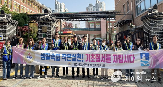 (케이엠뉴스) 수원시 영통구 바르게살기운동협의회는 지난 11월 7일, 매탄동 산남초등학교 앞에서 ‘기초질서 확립 캠페인’을 실시했다. 이는 일상 속에서 질서와 배려를 실천하는 시민 문화를 조성하고, 더불어 깨끗하고 안전한 생활환경을 만들어가기 위한 취지다.