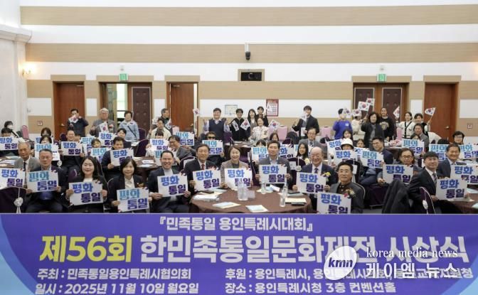 (케이엠뉴스) 용인특례시는 10일 시청 컨벤션홀에서 민족통일 용인특례시협의회 주관으로 ‘민족통일 용인특례시대회와 제56회 한민족통일문화제전 시상식’이 열렸다고 밝혔다.