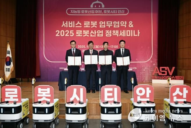 (케이엠뉴스) 안산시는 지난 10일 (재)경기테크노파크 다목적실에서 관내 기업들과 ‘서비스로봇 업무협약·안산시 로봇산업 정책세미나’를 개최하고, 국내 최초로 캠퍼스형 자율주행 배달로봇 ‘개미’를 도입한다고 11일 밝혔다.