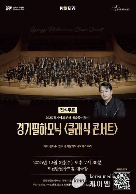 (케이엠뉴스) 포천문화관광재단은 오는 12월 3일 포천반월아트홀 대극장에서 경기필하모닉 ‘클래식 콘서트’를 개최한다.