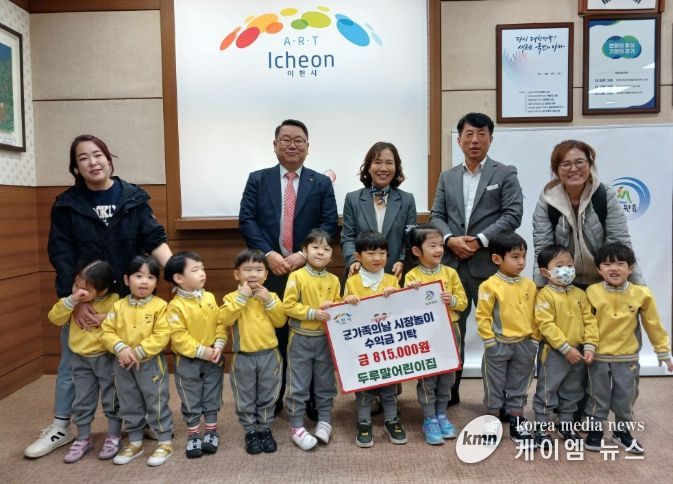 (케이엠뉴스) 이천시 장호원읍 두루말어린이집은 11월 11일, 어린이들과 함께 장호원읍행정복지센터에 방문해 군가족의 날 아나바다 시장놀이 행사의 수익금 815,000원을 전달했다.