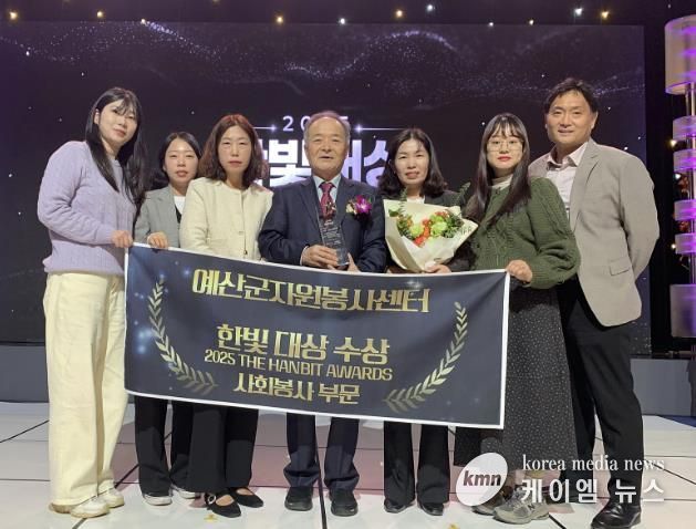 (케이엠뉴스) 예산군자원봉사센터는 지난 11일 대전MBC 공개홀에서 열린 ‘2025 한빛대상’ 시상식에서 사회봉사 부문 대상을 수상했다고 밝혔다.