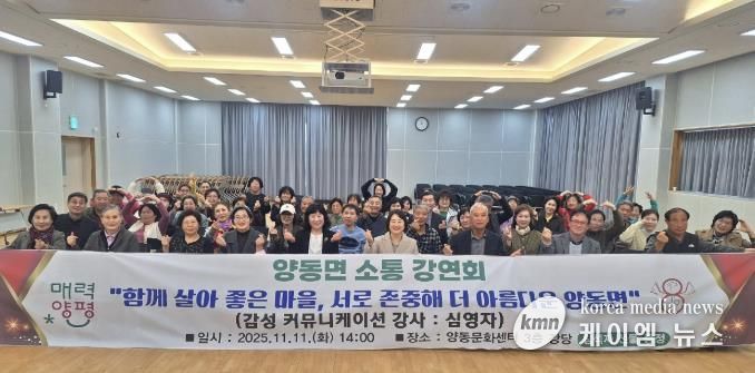(케이엠뉴스) 양평군 양동면은 11일 오후 2시 양동문화센터 3층 대강당에서 ‘함께 살아 좋은 마을, 서로 존중해 더 아름다운 양동면’을 주제로 소통강연회를 개최했다.