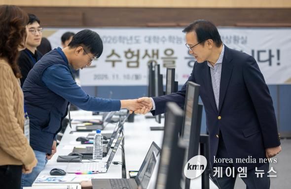 한편 임 교육감은 상황실 방문 전, 도내 한 수능 시험장교를 찾아가 교문 앞에서 수험생들을 응원했다.
