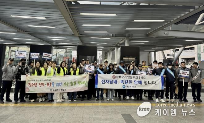 수원역 인근 피시(PC)방, 호프집 등 청소년 취약 시설을 방문해 술·담배 판매 금지를 안내하고, 점검을 병행했다. 또 흡연금지구역에서 담배를 피우는 이들을 계도하고, 담배꽁초 줍기 등 환경정비 활동도 했다.