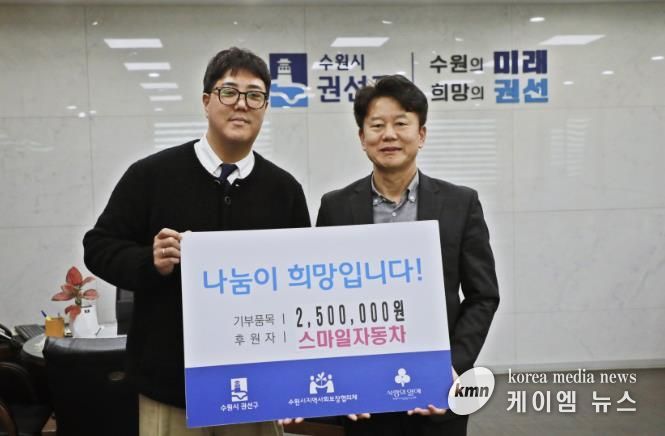 (케이엠뉴스) 수원시 권선구는 지난 13일, 관내 스마일자동차(대표 우영진)에서 어려운 이웃을 돕기 위한 후원금 250만원을 기탁했다고 밝혔다.