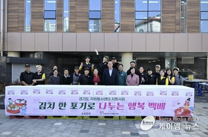 (케이엠뉴스) 동두천시 수호천사 봉사단은 지난 13일 송내동 행정복지센터에서 자원봉사자 30여 명이 참여한 가운데 ‘김치 한 포기로 나누는 행복 백배’ 봉사활동을 진행했다.