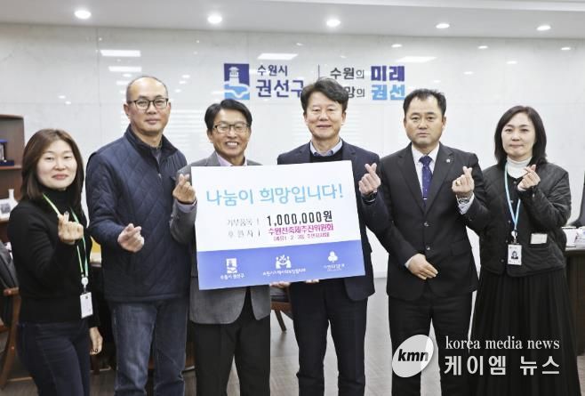 (케이엠뉴스) 수원시 권선구 수원천 축제 추진위원회(세류1·2·3동 주민자치회장)는 지난 19일, 권선구청을 방문하여 2025년 취약계층을 돕기 위한 기부금 100만원을 전달했다.