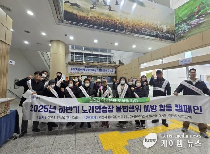 (케이엠뉴스) 화성특례시가 지난 20일 병점중심상가 일원에서 노래연습장 불법행위 예방을 위한 2025년 하반기 합동 캠페인을 실시했다.