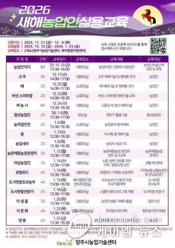 (케이엠뉴스) 양주시가 변화하는 농업환경에 대응하고 농업인의 현장 문제 대응 능력을 높이기 위해 ‘2026년 새해농업인실용교육’ 교육생을 모집한다.