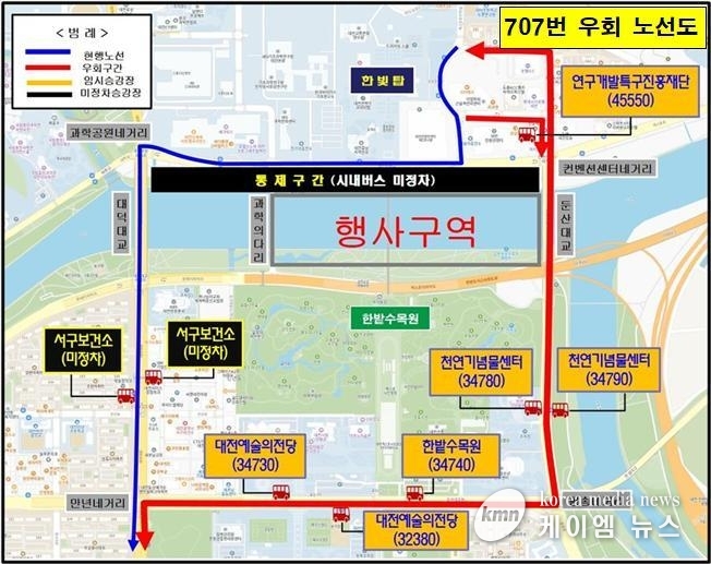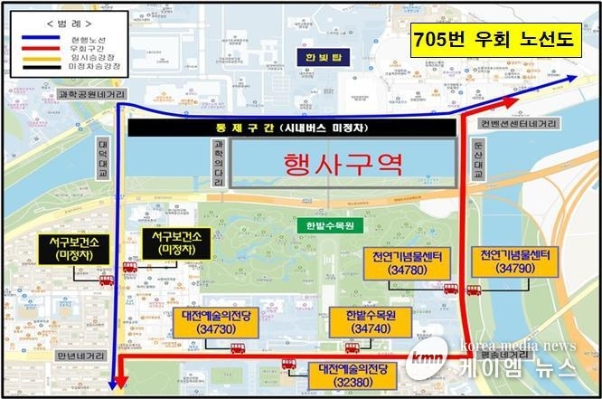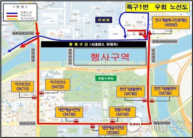 ·911번과 급행3·특구1번이다. 이들 노선은 행사 시간 동안 기존 동선을 벗어나 대덕대로–둔산대로–유등로를 경유한다.