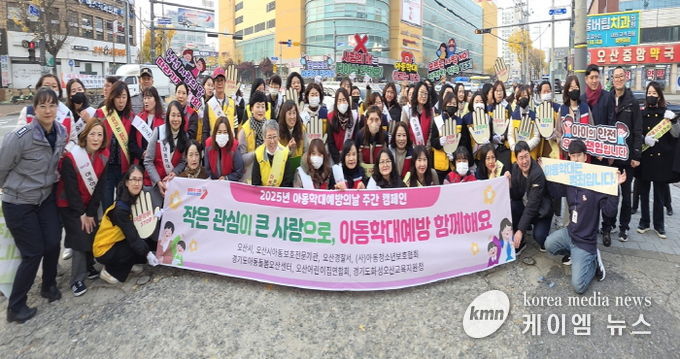 (케이엠뉴스) 오산시는 지난 24일 롯데마트 사거리 일대에서 아동이 안전하고 건강하게 성장할 수 있는 지역사회 환경 조성을 위해 아동학대 예방 캠페인을 실시했다고 밝혔다.