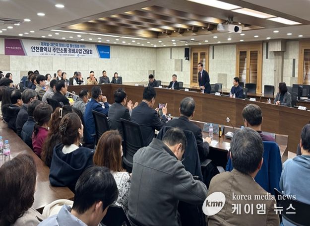 (케이엠뉴스) 인천광역시는 11월 24일 시청 영상회의실에서 재개발·재건축 정비사업 과정에서 발생하는 현장 애로를 해소하고 주민과의 소통을 강화하기 위한‘정비사업 주민소통 간담회’를 개최했다.