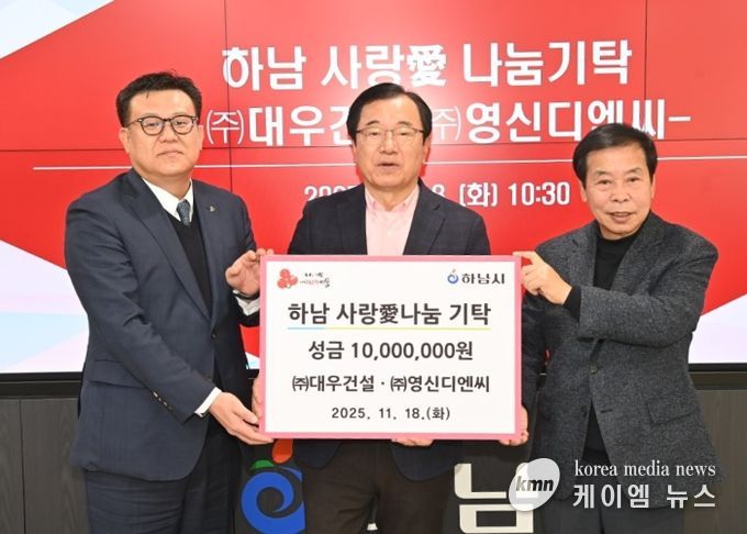 (케이엠뉴스) 지난 18일, ㈜대우건설, ㈜영신디엔씨는 성금 1,000만원을 하남시에 기탁했다.