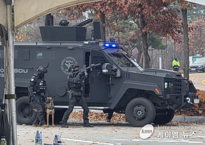 (케이엠뉴스) 경기도는 25일 수원월드컵경기장 제3주차장에서 드론 폭발물 및 화학물질 테러 대응 ‘2025년 대테러·사회재난 대비 합동훈련’을 실시했다.