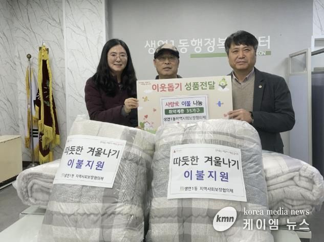 (케이엠뉴스) 생연1동 지역사회보장협의체는 지난 25일 갑작스레 추워진 날씨에 대비해 관내 저소득층 및 복지 사각지대 35가구에 따듯한 겨울 이불을 지원하고 안부를 확인하는 특화사업을 실시했다고 밝혔다.