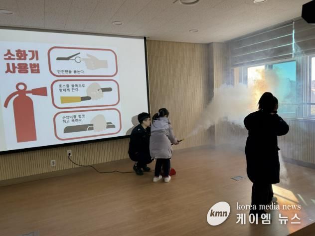 교육은 화재 발생 시 올바른 대피 방법을 익히는 데 중점을 두고 진행됐다. 학생들은 화재를 인지했을 때의 행동 요령, 연기 속에서의 대피 자세, 대피 시 반드시 지켜야 할 ‘절대 금지 행동’ 등 실제 상황에 바로 적용 가능한 내용을 체험 중심으로 배웠다. 또한 소방대원이 직접 시연하며 소화기 사용법을 설명한 후, 학생들이 일대일로 조작해 보는 실습도 이어졌다. 이를 통해 어린이들이 비상 상황에서 소화기를 두려움 없이 사용할 수 있도록 했다.