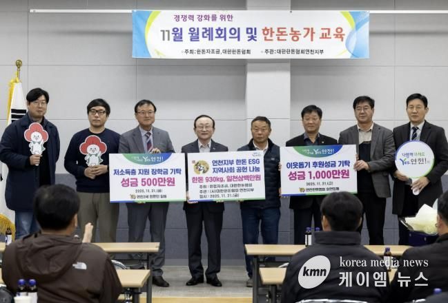 (케이엠뉴스) (사)대한한돈협회 연천지부는 지난 21일 동막리 소재 협회 회의실에서 11월 월례회의 및 한돈농가 교육 행사를 개최하고, 소외계층을 위한 따뜻한 나눔을 실천하는 기탁식을 함께 진행했다.
