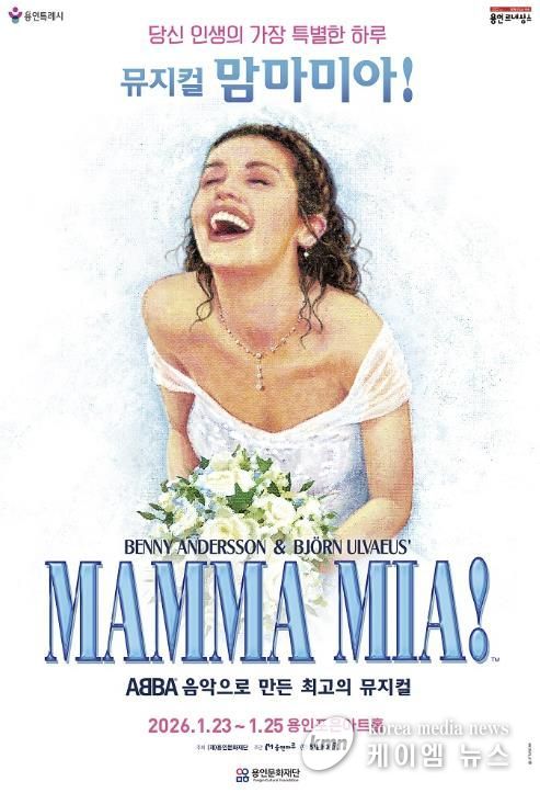 (케이엠뉴스) 용인문화재단은 오는 2026년 1월 23일부터 25일까지 뮤지컬 ‘맘마미아!’를 용인포은아트홀에서 개최한다고 밝혔다. 관람 연령은 초등학생 이상으로, 겨울방학 기간 가족·친구·연인 등 남녀노소 누구나 함께 즐길 수 있는 대표 뮤지컬을 3일간 총 4회에 걸쳐 선보인다.