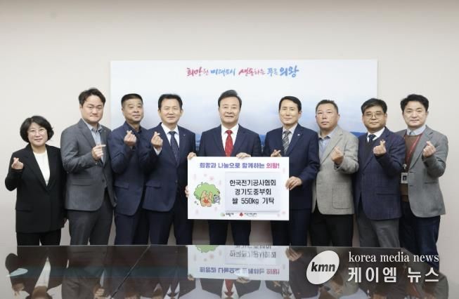 (케이엠뉴스) 의왕시는 11월 27일 한국전기공사협회 경기도중부회에서 쌀 10kg 55포(총 550kg)를 기탁했다고 밝혔다.