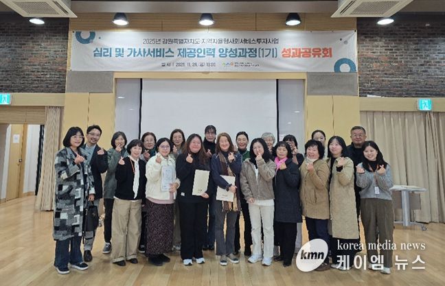 (케이엠뉴스) 강원특별자치도 사회서비스원 소속 강원지역사회서비스지원단은 도내 지역자율형 사회서비스 투자사업의 심리 및 가사서비스 분야 제공인력 양성과정의 성과를 공유하는 자리를 마련했다.