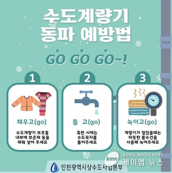 (케이엠뉴스) 인천광역시 상수도사업본부는 겨울철 한파로 인한 수도시설 누수·동파 등을 예방하고, 시민들에게 24시간 안정적으로 수돗물을 공급하기 위해 내년 3월 15일까지 급수대책을 추진한다고 1일 밝혔다.
