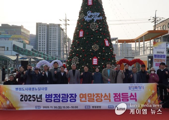 (케이엠뉴스) 화성특례시는 크리스마스와 연말연시를 맞아 지난달 30일 병점광장에서 2025년 병점광장 내 연말장식 설치 점등식을 개최했다.