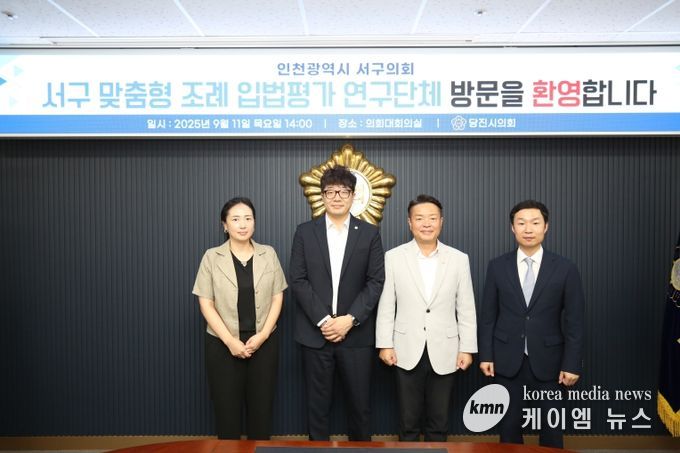 (케이엠뉴스) 인천 서구의회 서지영·송승환·김남원·이영철 의원으로 구성된 서구 맞춤형 조례 입법평가 연구단체는 1일 '인천광역시 서구 조례 입법평가 조례안'을 대표발의 했다고 밝혔다. 찬성의원으로는 백슬기·유은희·박용갑 의원이다.