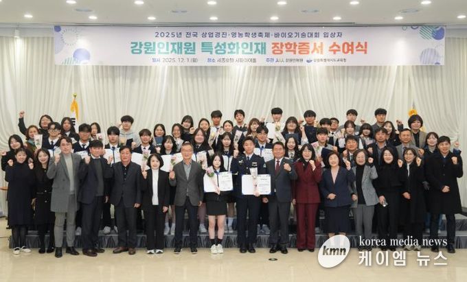 (케이엠뉴스) 강원특별자치도교육청은 12월 1일, 춘천 세종호텔에서 전국대회에서 우수한 성적을 거둔 도내 특성화고 학생들을 격려하기 위한 장학증서 수여식을 개최했다.