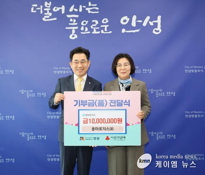 (케이엠뉴스) 안성시는 지난 12월 2일 용마로지스(주)로부터 현금 1,000만 원을 기부받았다고 밝혔다.