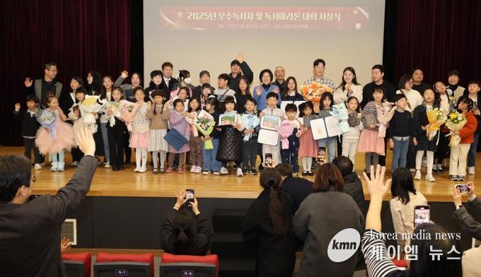 (케이엠뉴스) 안성시는 지난 11월 29일 중앙도서관 다목적홀에서 ‘2025년 우수독서자 및 독서마라톤 대회 시상식’을 성황리에 개최했다고 밝혔다. 이번 시상식은 독서 생활화를 장려하고 도서관 이용 활성화를 도모하기 위해 마련됐으며, 우수독서자와 책 읽는 가족, 독서마라톤 완주자 등 100여 명이 참석해 뜻깊은 시간을 가졌다.