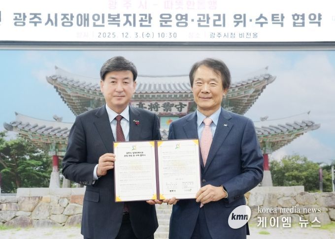 (케이엠뉴스) 광주시는 3일 시청 비전홀에서 사회복지법인 따뜻한동행과 ‘광주시장애인복지관 운영·관리 위·수탁 협약’을 체결하고 2026년 상반기 개관을 목표로 복지관 운영 계획과 개관 준비 절차를 공식화했다.