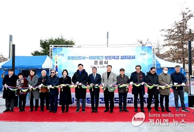(케이엠뉴스) 파주시는 지난 3일, 운정호수공원과 야당동을 연결하는 ‘운정신도시~야당동 간 보도육교 설치 공사’를 완료하고 준공식을 개최했다.