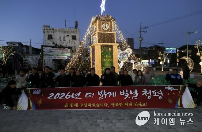 (케이엠뉴스) 가평군 청평면은 2일 오후 5시 청춘역1979 시계탑 광장에서 ‘2026년 새해맞이 홍보탑 점등식’을 열었다.