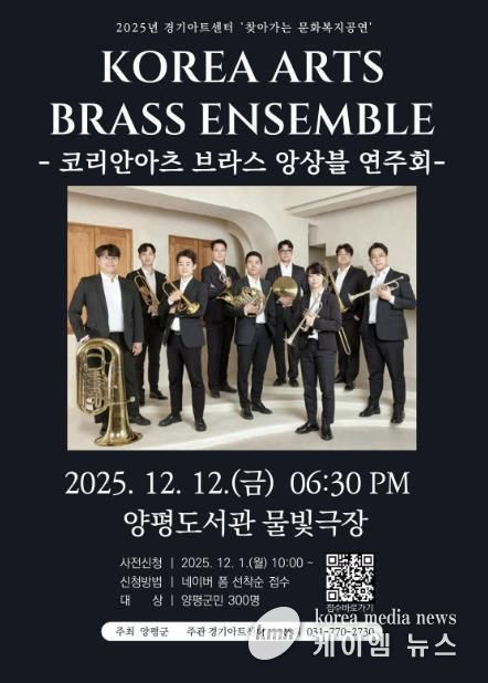 (케이엠뉴스) 양평군은 지역 주민에게 품격 있는 문화 향유 기회를 제공하고자 오는 12월 12일 양평도서관 물빛극장에서 ‘연말 맞이 찾아가는 문화복지 공연’을 개최한다고 밝혔다.